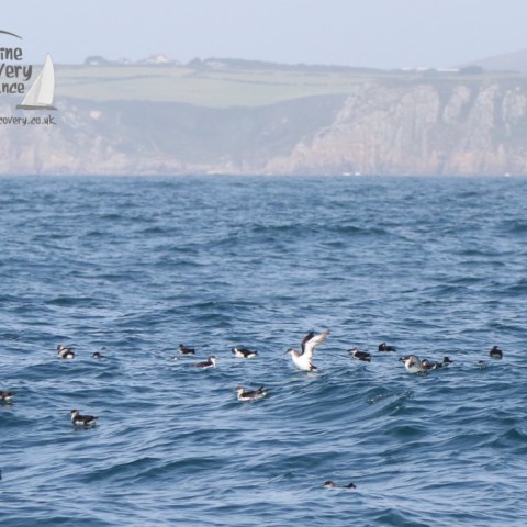 The wind calmed a lot today though there were still some splashy waves out there. The wildlife was all there though – common dolphins, grey seals, seabirds and a porpoise on the first Ocean Discovery trip. On the second three hour trip, we spotted several more seals bobbing around in the water before going a long way south to an area where we often see dolphins – sure enough even though it felt very quiet out there, up popped a group of common dolphins who gave everyone some awesome views. There were lots of soaring shearwaters too, and on the way back in we had some superb sightings of several groups of harbour porpoises who had been feeding under diving gannets. On the evening Bay Discovery we watched a little juvenile seal hauled out before finding some porpoises in the same place. And just as we were dropping the sails by the Gear Pole, a surprise group of dolphins appeared! Sometimes you really do need to keep on watching out all the way to the harbour entrance.