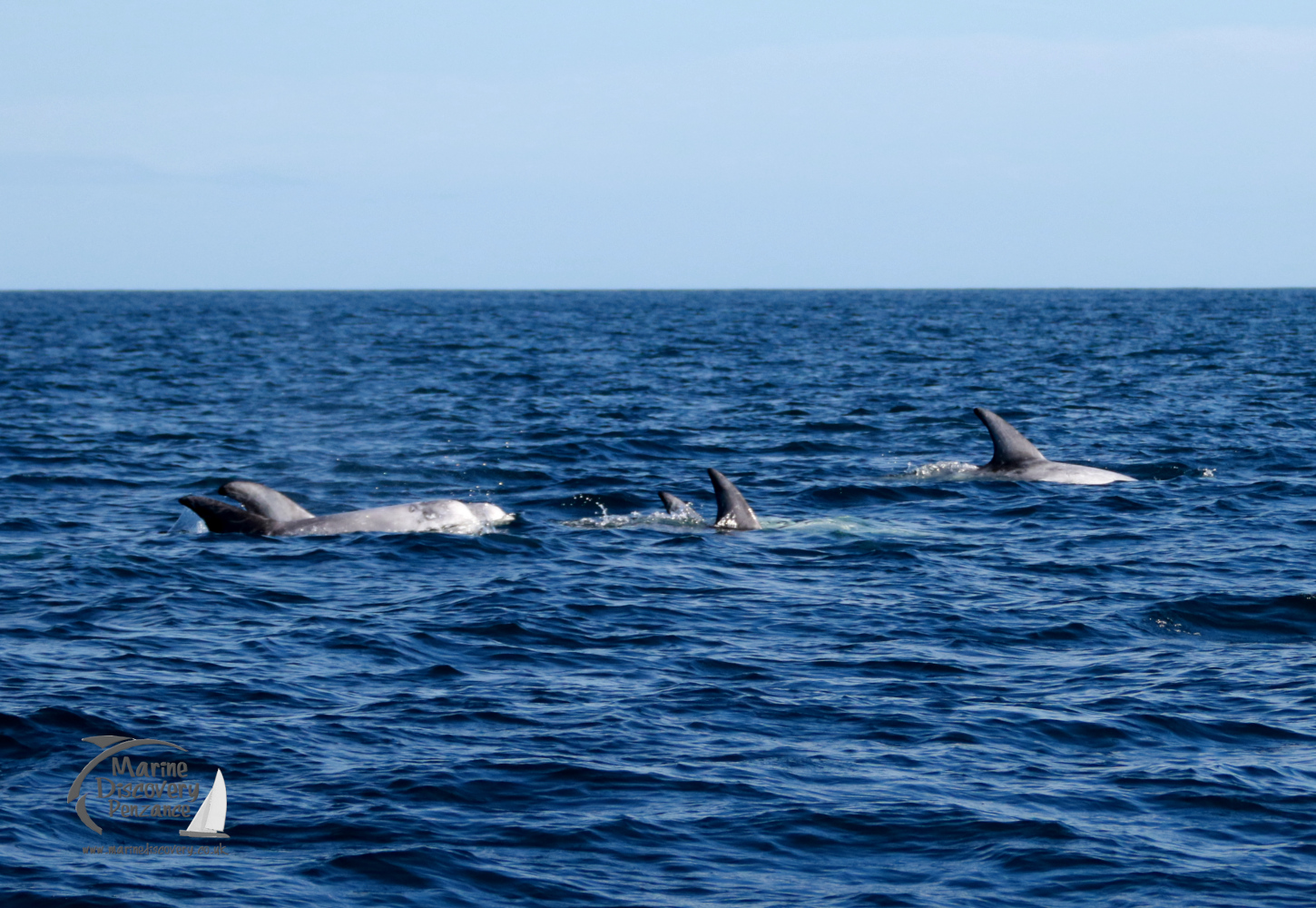 In the afternoon we stopped to watch seals on the way out and soon after found some more harbour porpoises which gave us great views. Further offshore we found more porpoises and just after we had finished watching them a minke whale surfaced. Searching for the whale lead us to some interactive common dolphins. On the way in we found a large pod of Risso’s dolphins, which was a very special sight in the low evening sunshine. All in all another great day on the water.